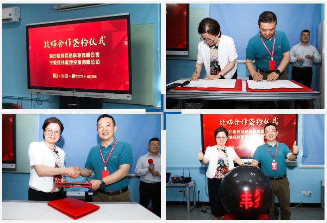 随后,宁波豆奶视频最新官网数控设备有限公司董事长林立雪和和印·爱欧图文总经理汪泓签字交换,此次的签约标志着双方建立了稳固的战略合作伙伴关系,通过双方的合作,资源融合,一起共创双赢!